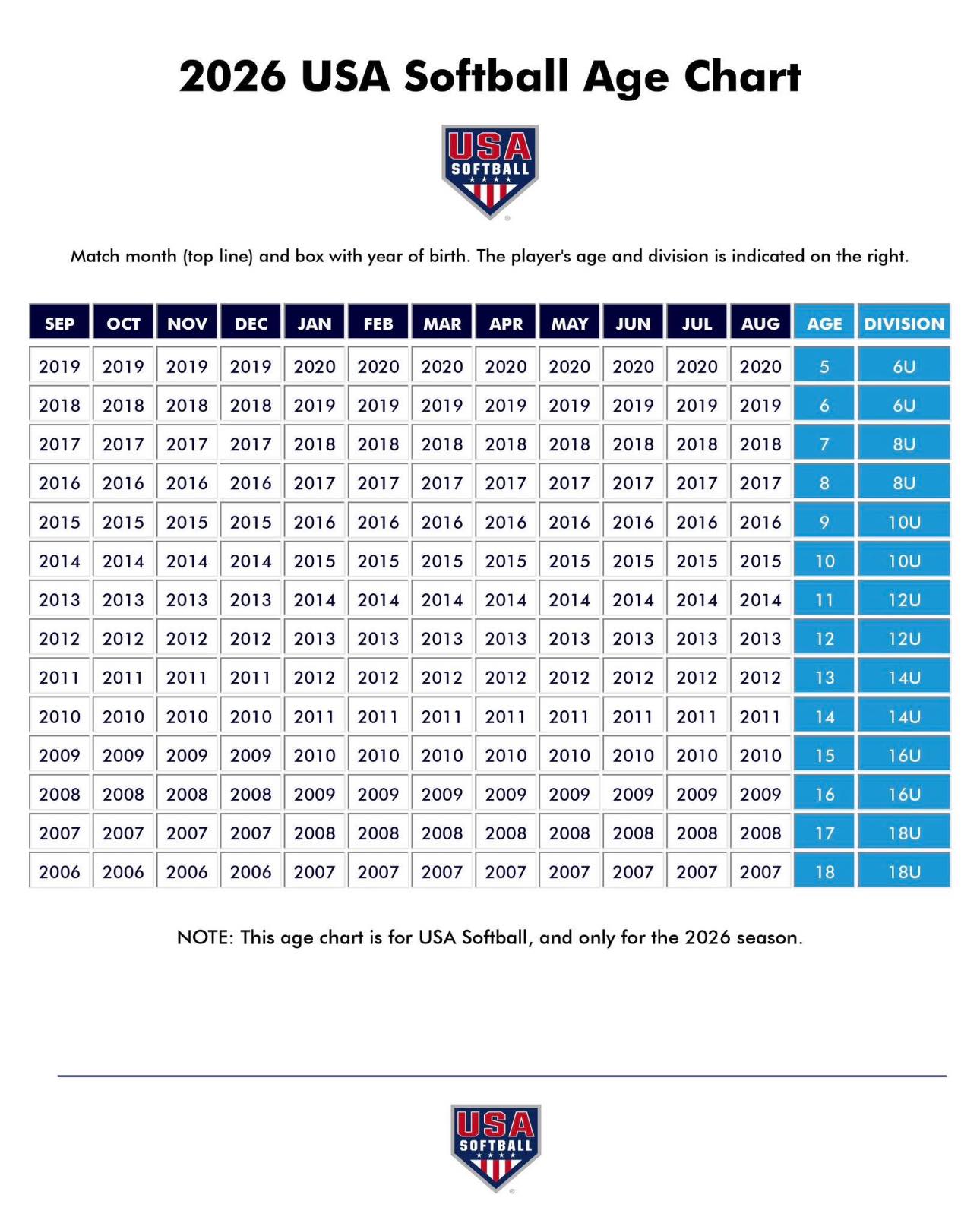 2026 USA Softball Age Chart